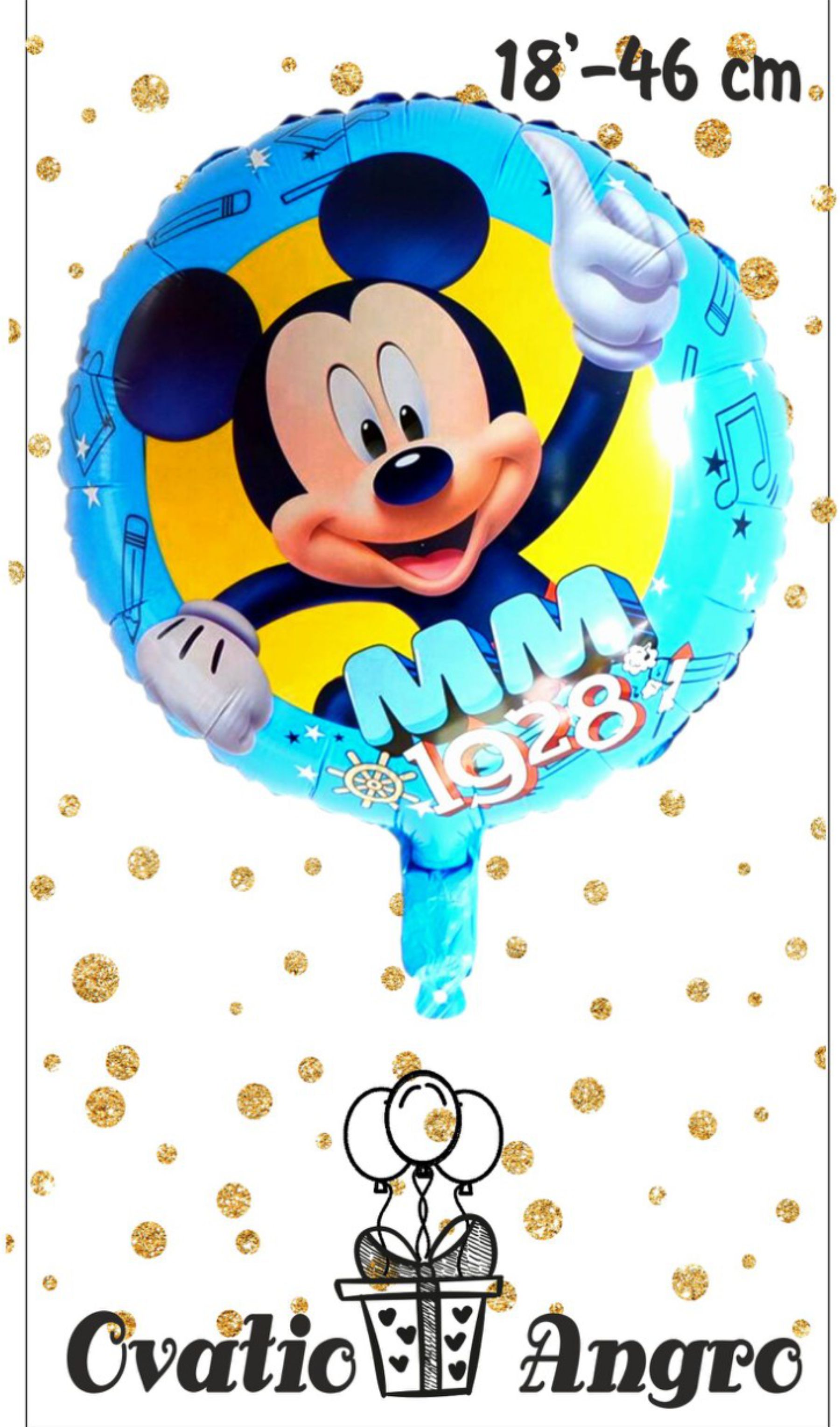 Фольгированный шар круг Мики Маус -1 18''/46 см