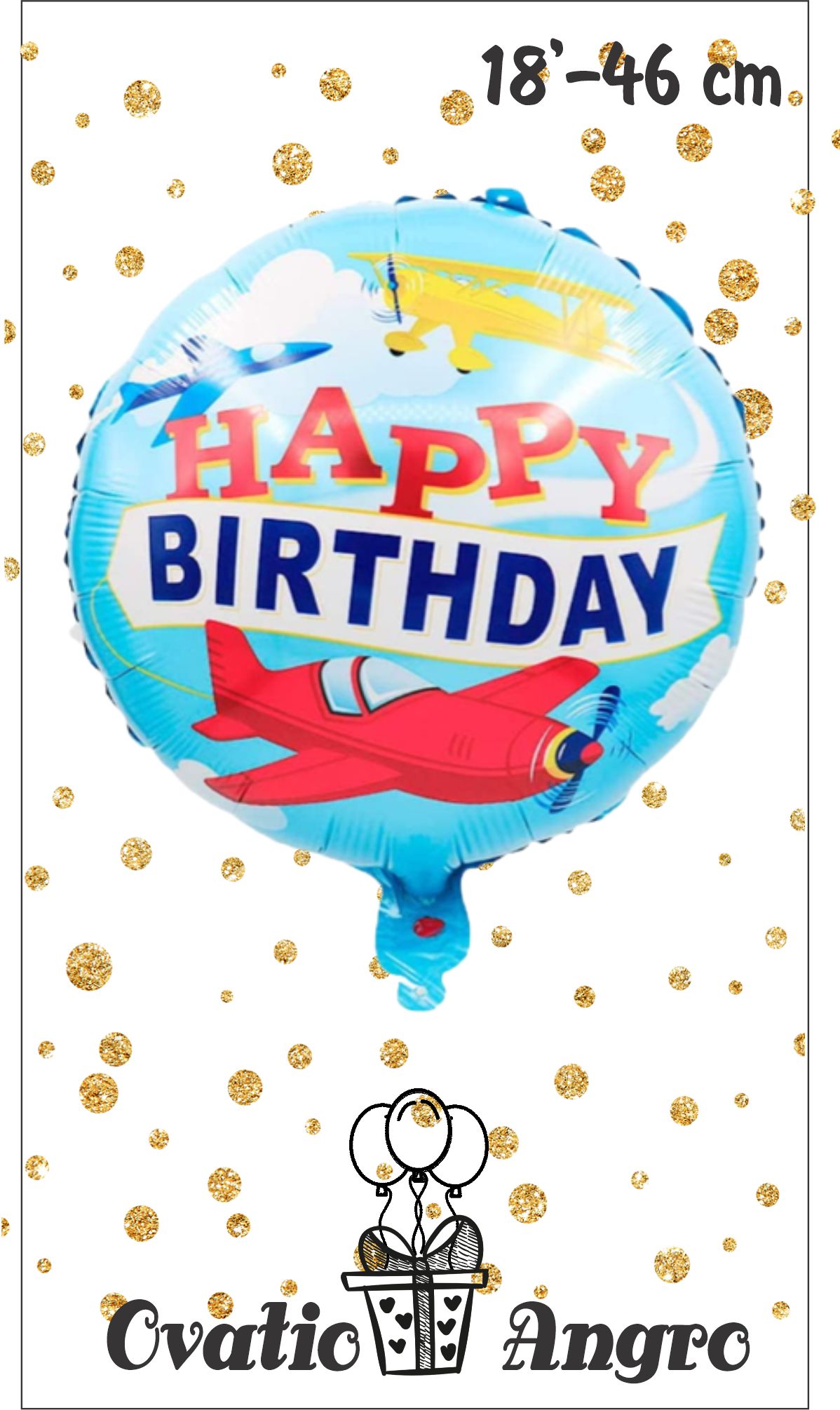 Фольгированный шар круг Самолет 18''/46 см