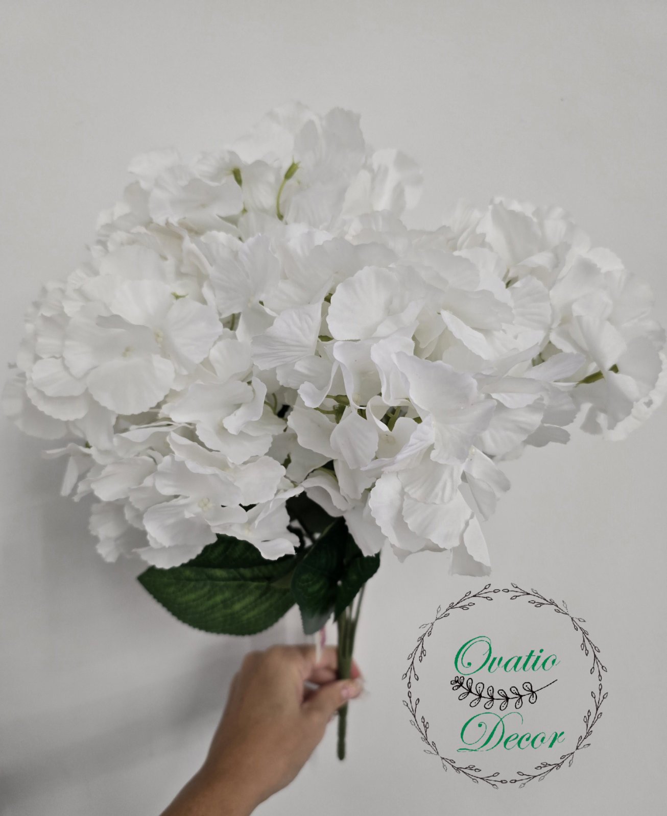 Гортензия букет белая с листьями XL
