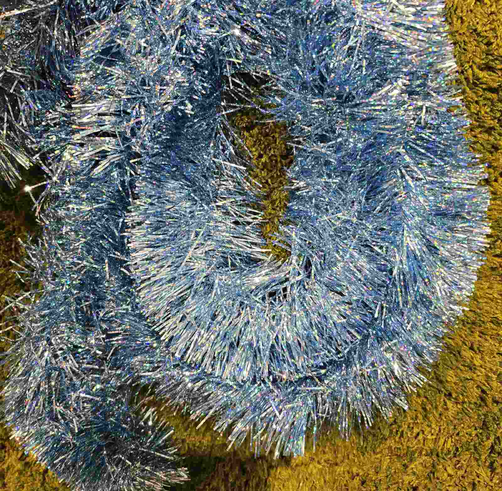 Мишура голубая с глитером 2м (9 см)