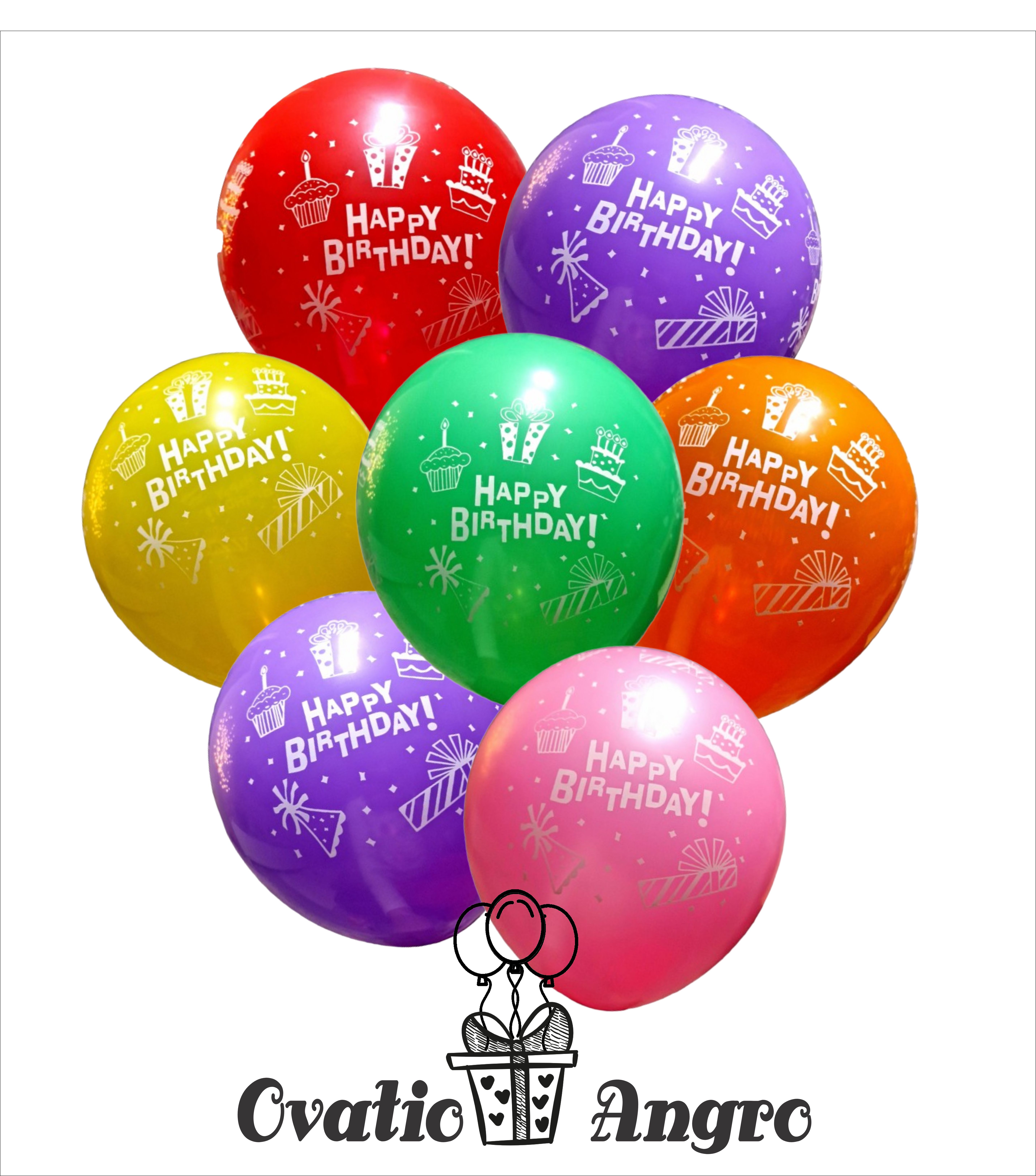 Baloane crom cu desen Happy Birthday 12''/30 cm multicolore