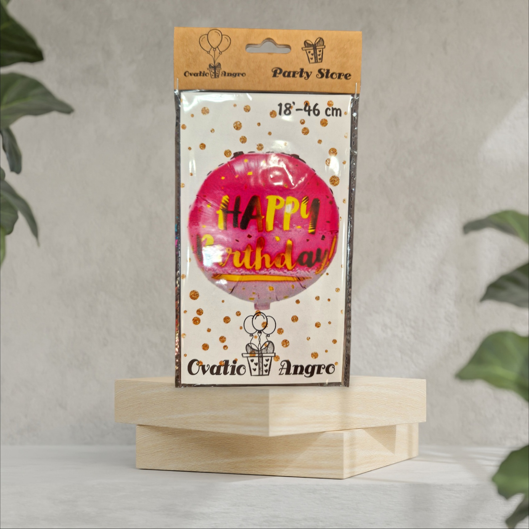 Balon folie rotund Happy Birthday roz 18''/46 cm