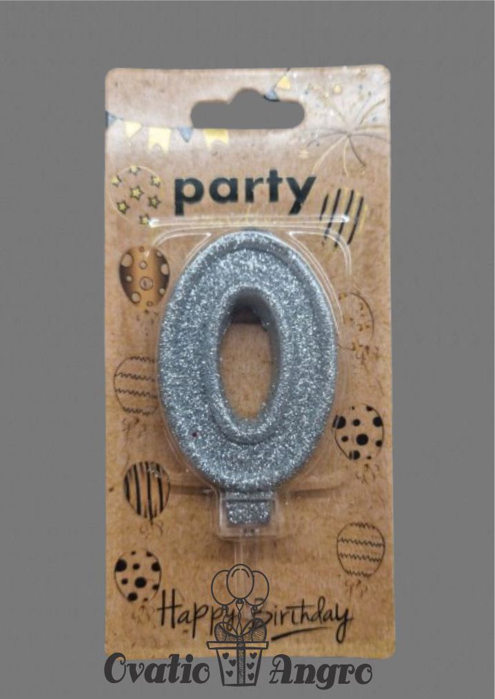 Lumanare cifra 0 argintie cu sclipici