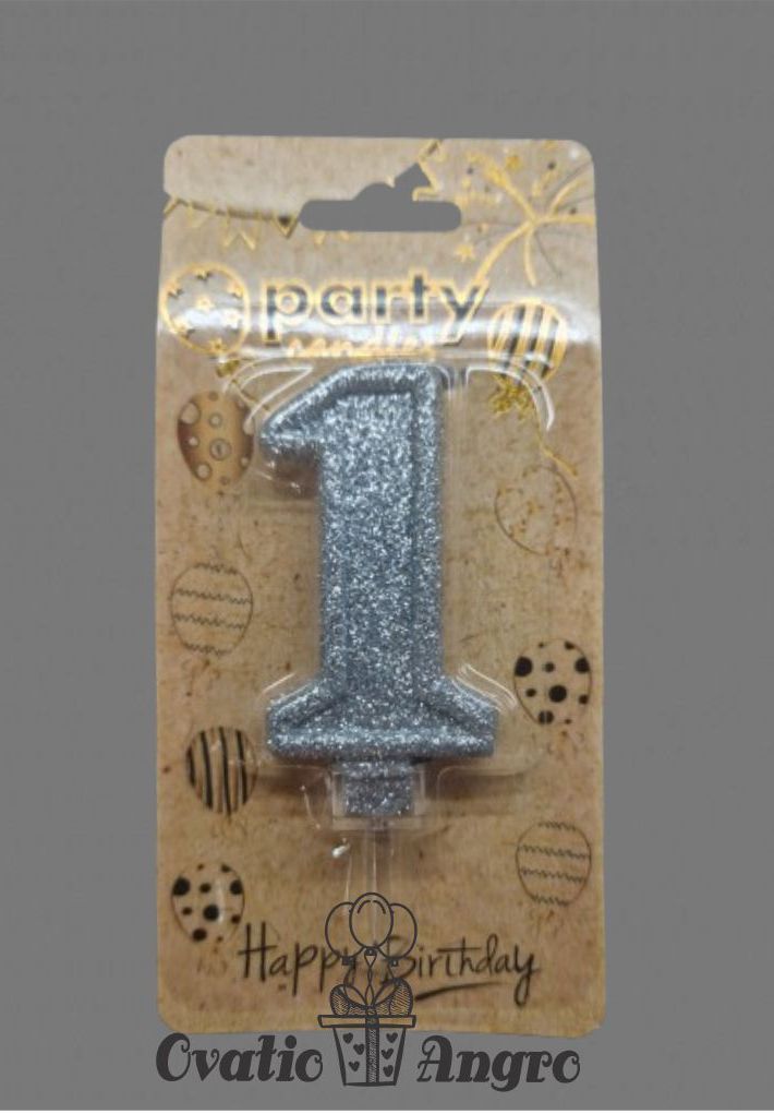 Lumanare cifra 1 argintie cu sclipici