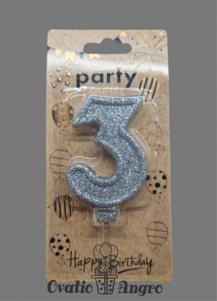 Lumanare cifra 3 argintie cu sclipici