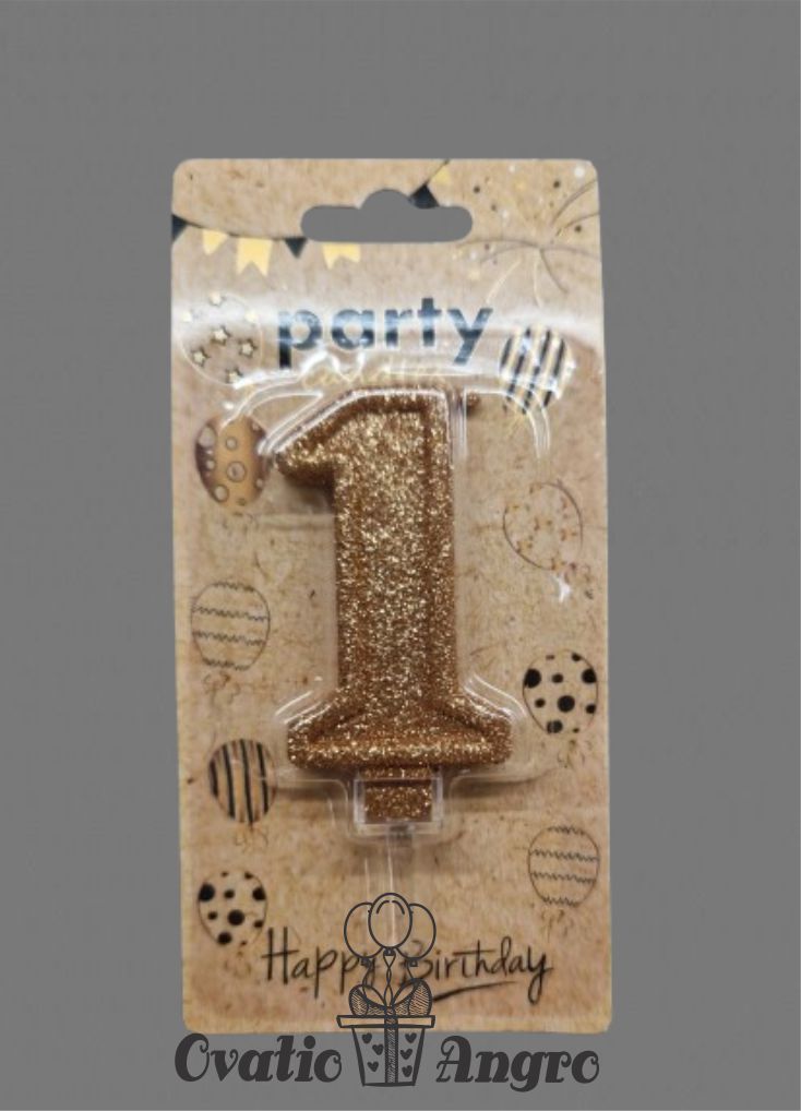Lumanare cifra 1 roz auriu cu sclipici