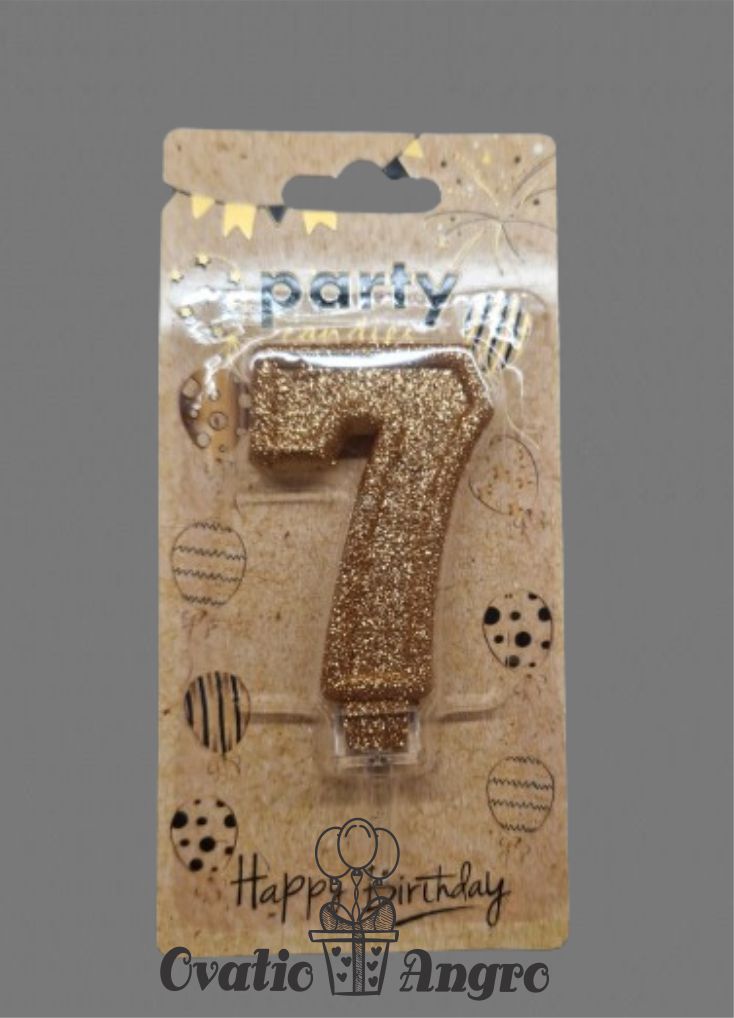 Lumanare cifra 7 roz auriu cu sclipici
