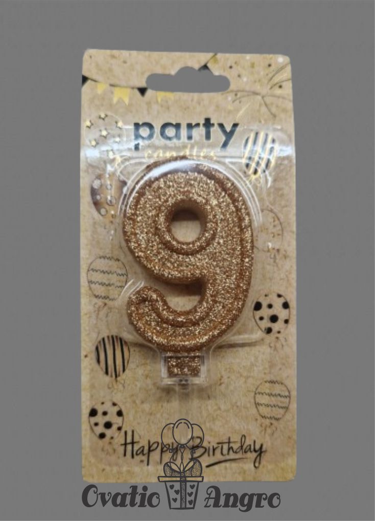 Lumanare cifra 9 roz auriu cu sclipici
