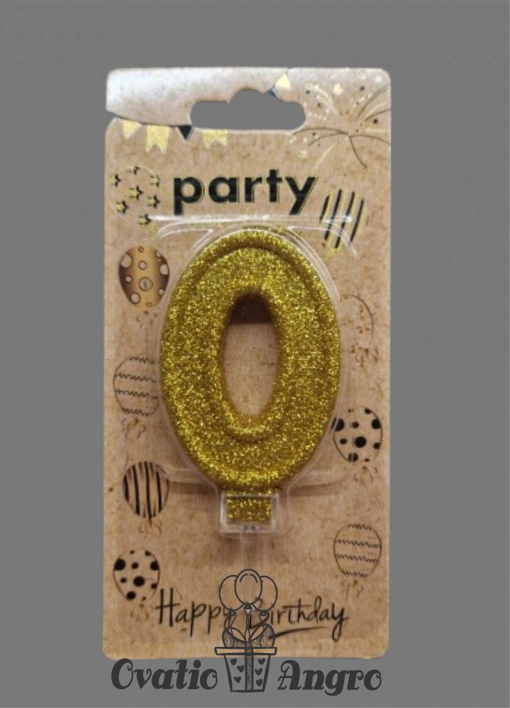 Lumanare cifra 0 aurie cu sclipici
