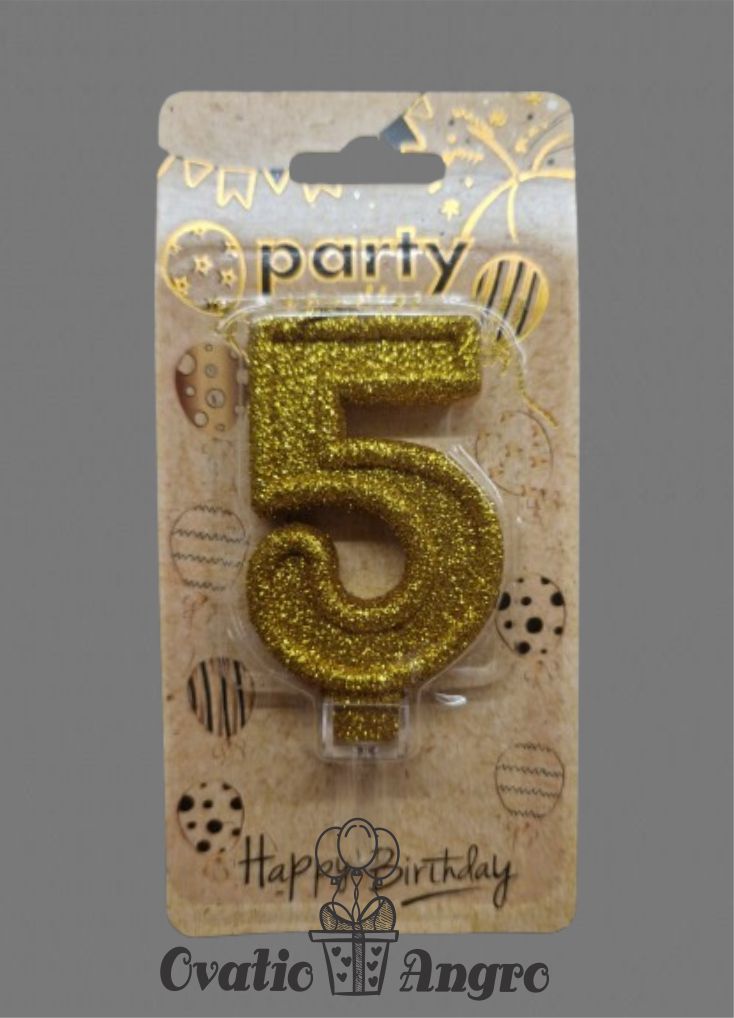 Lumanare cifra 5 aurie cu sclipici