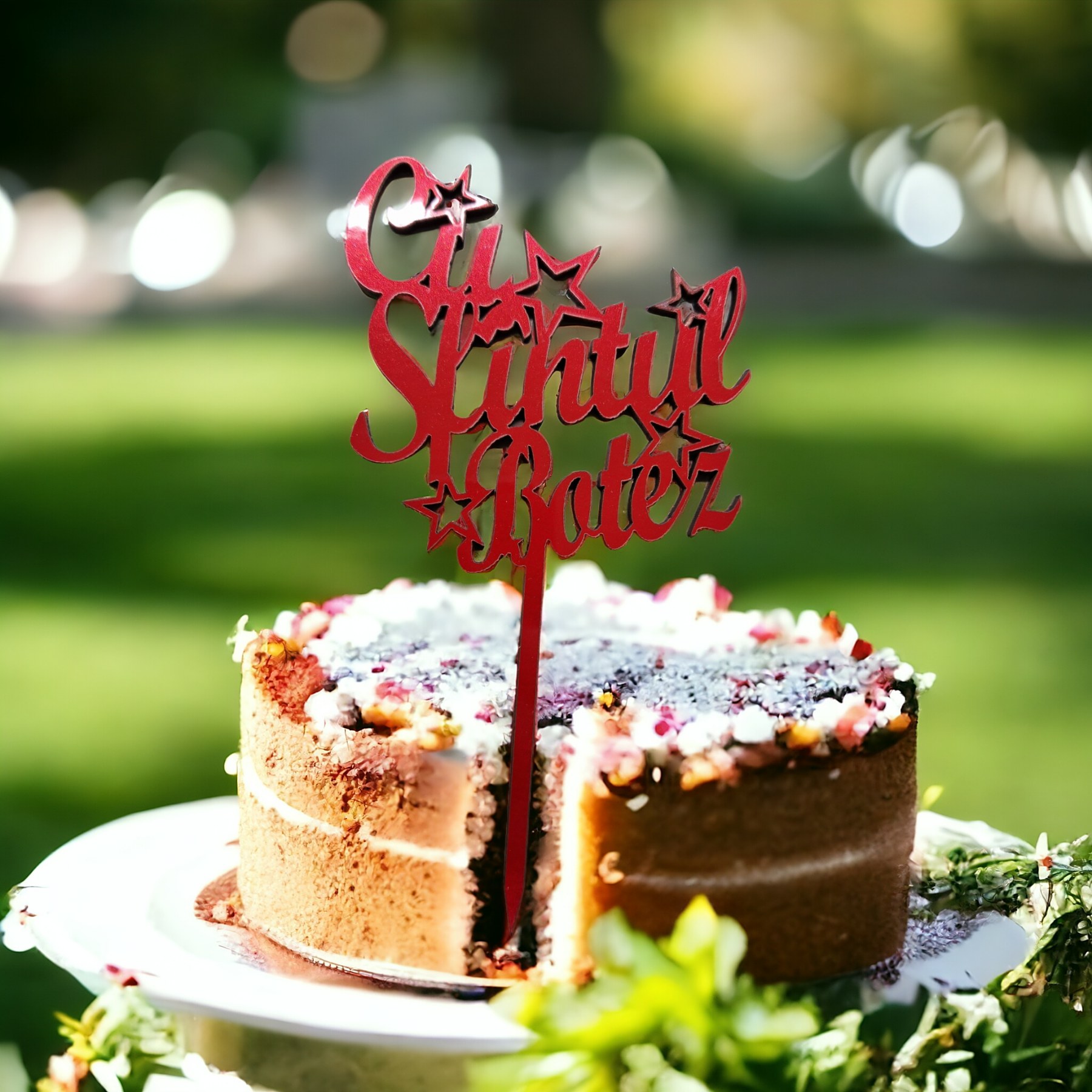Topper lemn in folie Cu sfantul botez rosu
