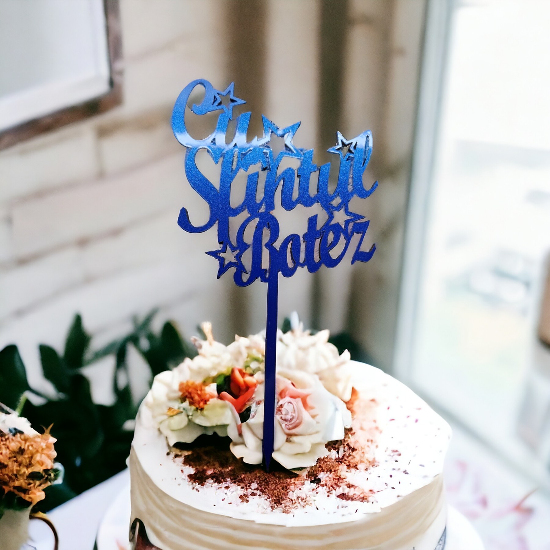 Topper lemn in folie Cu sfantul botez albastru