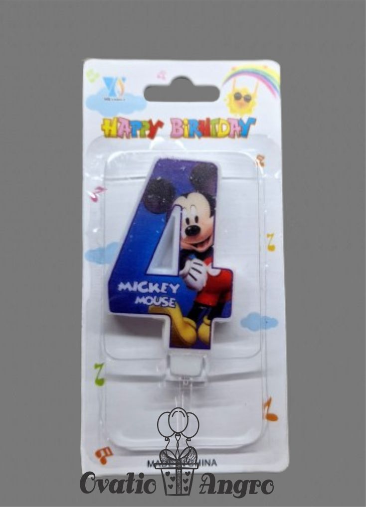Lumanare cifra 4 Mickey Mouse albastru